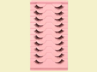Caixa com 10 pares de pestanas. Vários modelos para diferentes tipos de efeitos.